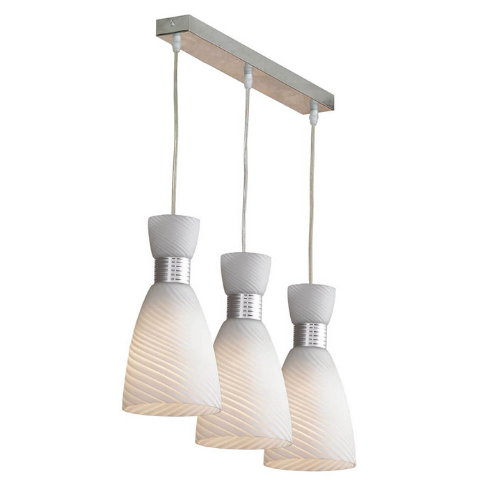 Люстра Rei — это сочетание смелого стиля и высокого качества. Состоит из 3 плафонов, сделанных в форме пирамиды. Обеспечивает хорошее освещение на расстоянии до 20 м2. Отлично подходит для небольшой кухни.